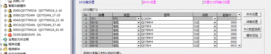 大家好 公司有一臺設備 PLC程序下智能模塊顯示的與實際PLC設定的智能模塊不符 我參照PLC的插槽號跟IO起始號新建的定位模塊 連上PLC后怎么所有的QD75D4模塊讀取不出來 其他的QD75MH4的都能讀取出來 還需要設置什么才能讀取嗎 麻煩解答了 |