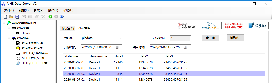 以上5步即完成了ModbusTCP協議的數據采集到數據庫的設置,同時開啟了OPCServer的功能,接下來就是測試了。