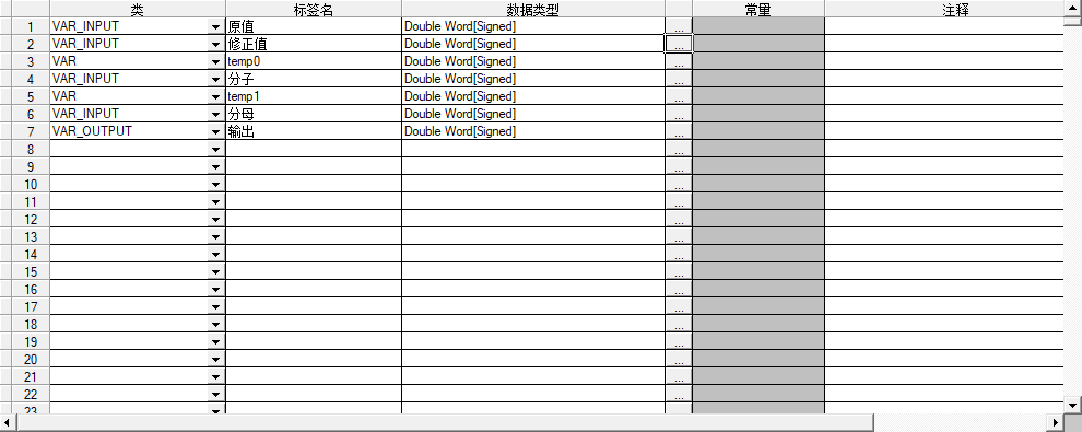 在FB里面設置標簽:D10為原值,D12為修正值,D16為分子,D22為分母,D24為輸出值,