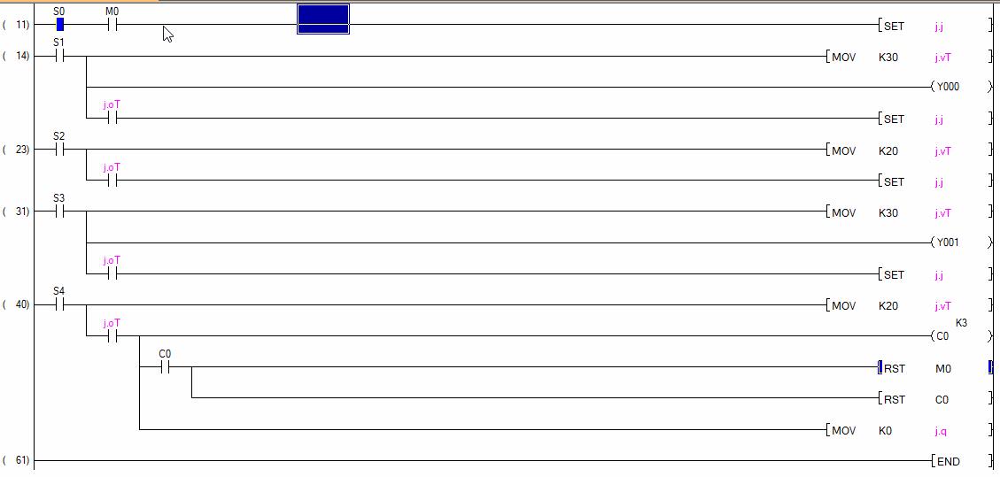 并不是噢,整個狀態機只要給M0置1就可以復位了,開關只需要控制M8012的時鐘就可以了,要重復觸發加一條復位就可以了.