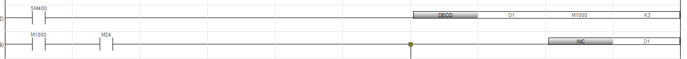 引用引用第11樓胡大師于2021-11-02 09:21發(fā)表的 :deco 指令 不過(guò)這個(gè)會(huì)占用很多輔助繼電器。比如 DECO D0 M0. 那么就是D0=多少? M0+D0的輔助繼電器就會(huì)導(dǎo)通。我覺(jué)得最好是使用ld= k0 D? 開(kāi)始 mov K1 D?結(jié)束。這樣的好處太多.......