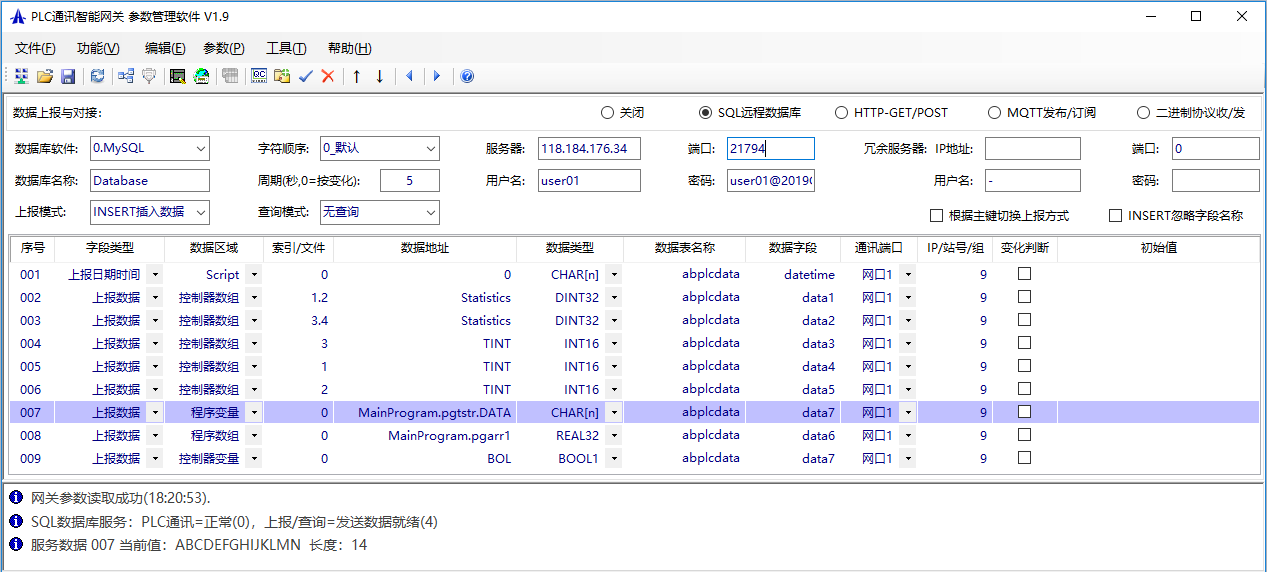 IGT-DSER按所配置的條件查詢數據庫的數據,將數據寫入到PLC的寄存器;