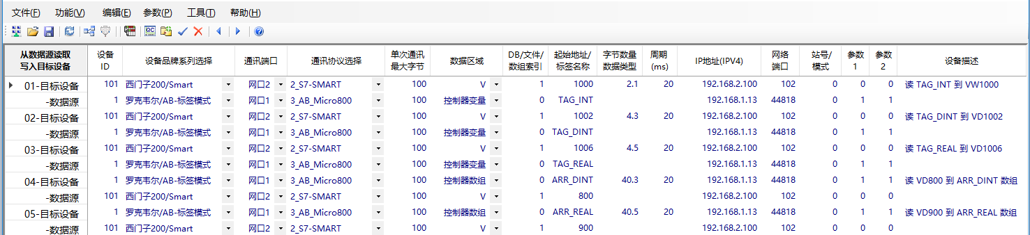其它品牌的PLC之間通訊案例在附件中)。網關常用的PLC類型如下: