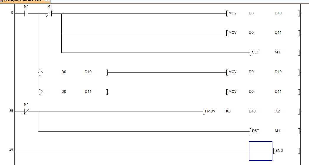 各位大神們 我想取一個連續變化的壓力寄存器在一個位置區間范圍的內壓力最大值和最小值 我應該怎么編寫程序 三菱Q系列的