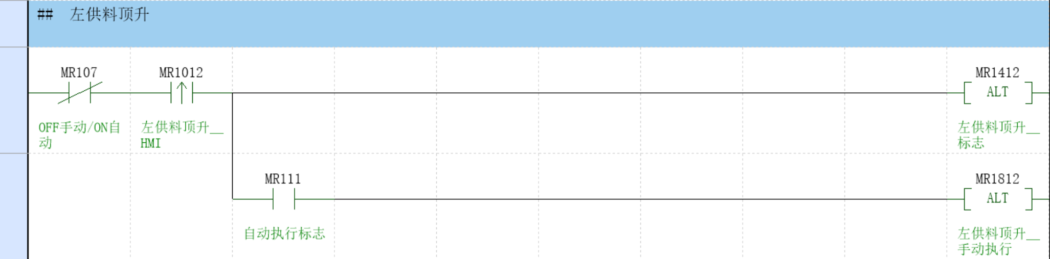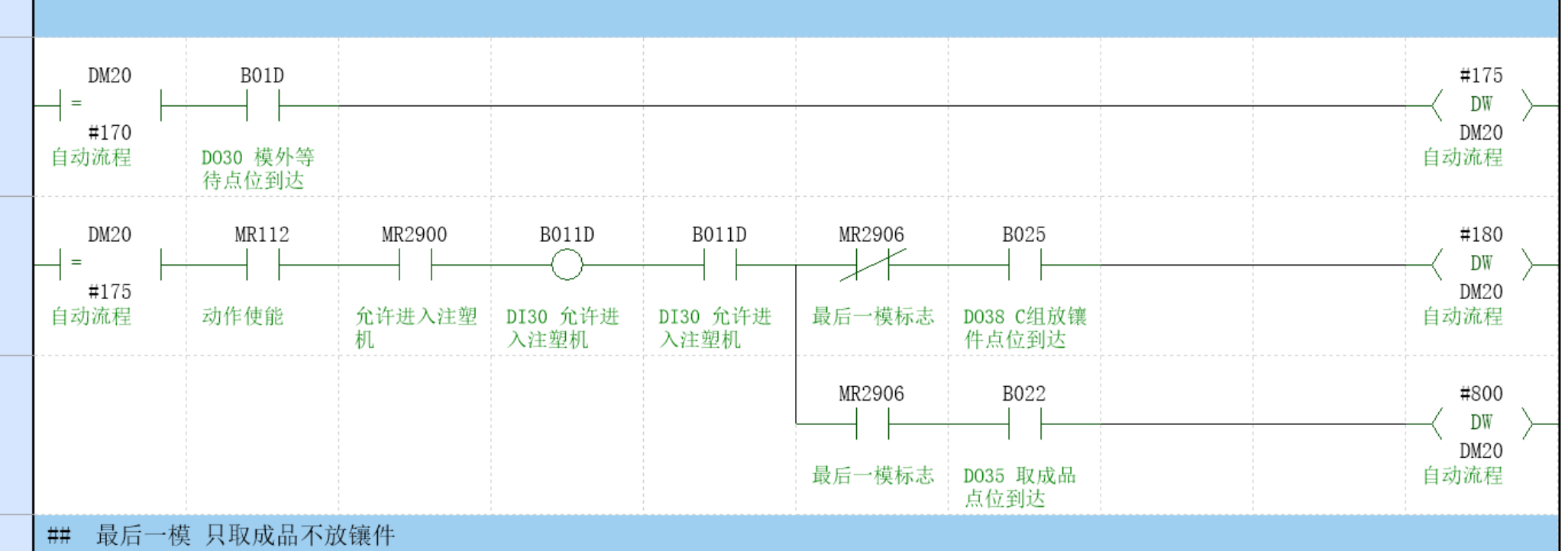 描述:自動就用流程賦值咯,這樣手動完進自動還可以接著跑,暫停啊報警啊退自動都斷動作使能。