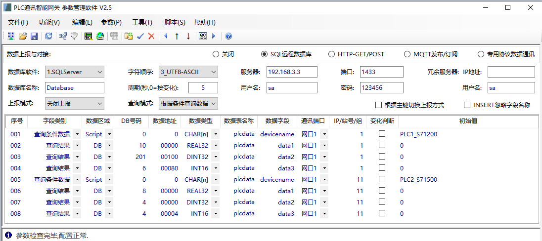 本案例是PLC采用IGT-DSER智能網(wǎng)關(guān)查詢數(shù)據(jù)庫的數(shù)據(jù),將查詢結(jié)果寫入到對應(yīng)的PLC寄存器。