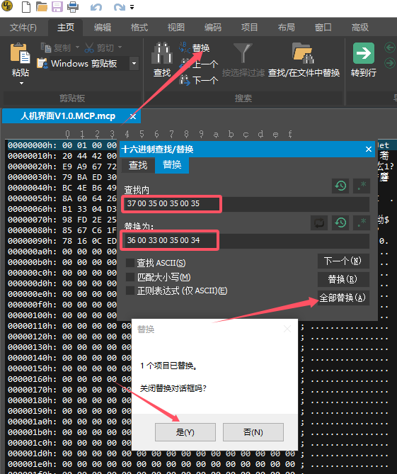 使用UltraEdit 打開McgsPro 3.3.6 7555 QX 版本文件 MCP使用替換功能,替換37 00 35 00 35 00 35為36 00 33 00 35 00 34然后保存文件PS:37 00 35 00 35 00 35為十六進(jìn)制的755536 00 33 00 35 00 34為十六進(jìn)制的6354