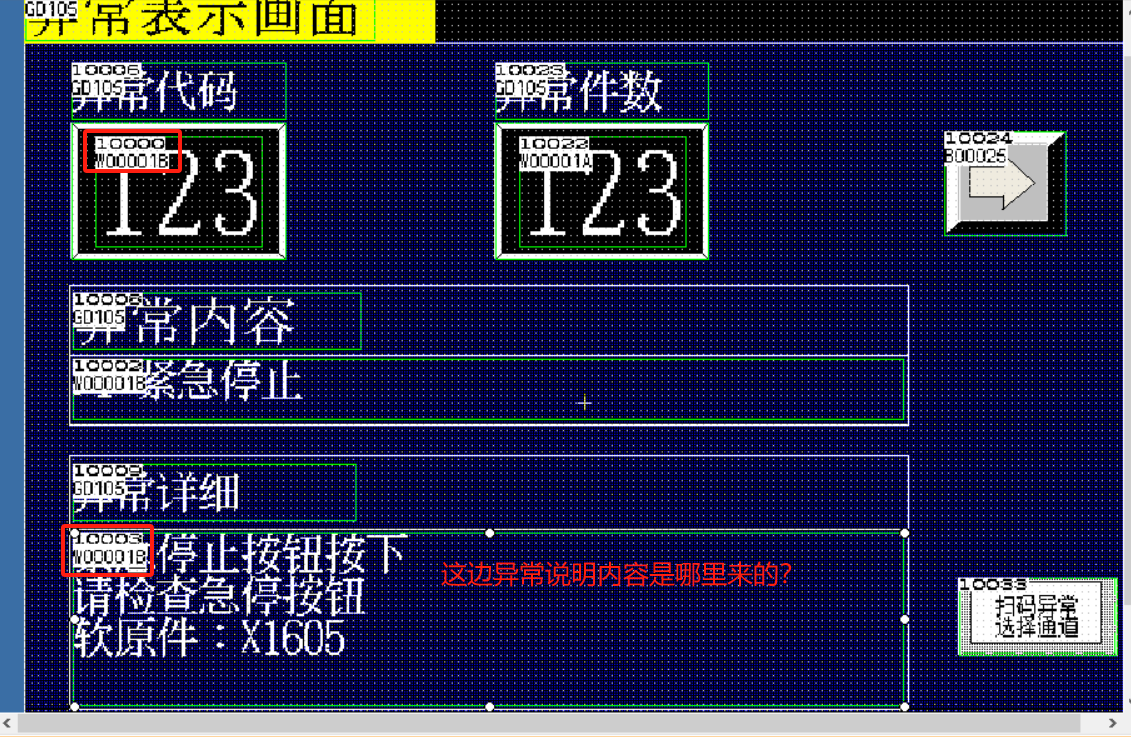 引用引用樓主2645855946于2025-04-22 22:35發表的 觸摸屏畫面顯示問題 :觸摸屏是三菱GOT2000的,程序里面就這一個位置提到了W1B(圖片1);人機畫面就這一頁提到了W1B(圖片2),不知道報警內容在哪里編輯上去的,報警內容隨著報警更新,是會變的。圖片3-7是點開紅色文字的屬性內容