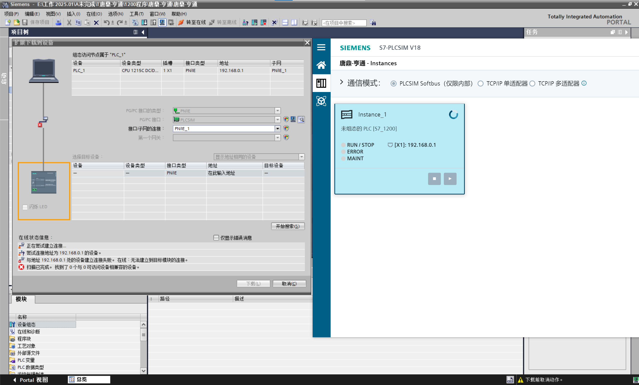 如題,最近開始用博圖了但是發現博圖仿真用不了,網上找了挺多方法都試過了,然后成功把博圖整崩了,哈哈,然后我就重裝系統了,哎說多了都是淚,重裝系統之后我在家園里面找了個安裝包又重新把博圖安裝上了,安裝的是博圖V18的版本,然后裝好之后還是一樣的問題,PLC仿真還是用不了,但是這個觸摸屏的仿真又可以,不知道是什么原因,然后我用管理員權限運行了博圖的仿真軟件,仿真顯示正常的,但是還是搜索不到PLC,有沒有大神知道是什么原因啊,先謝謝了!