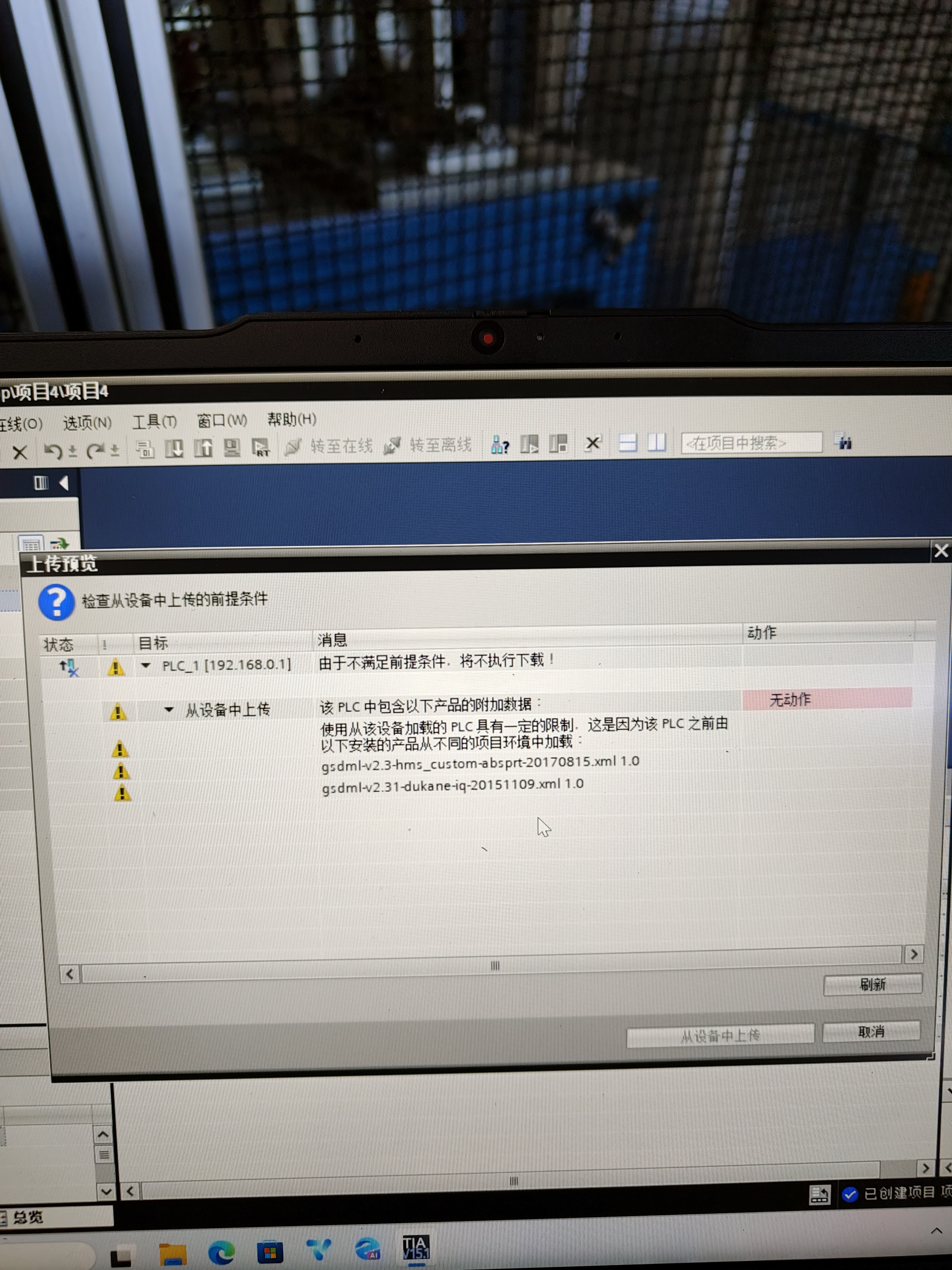 你點下紅色無動作,選初始化后,下面的從設備上傳應該可以點,點了之后會自動加載源程序中的GSD文件