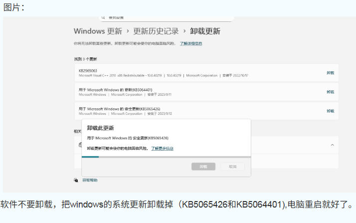 5426這個更新卸載不掉啊,怎么搞,軟件老啟動不起來問題很嚴重啊