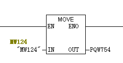 把位存儲字MW124中的數(shù)值移到模擬量PQW754輸出。 (PQW是模擬量輸出字,選址范圍0-65534)