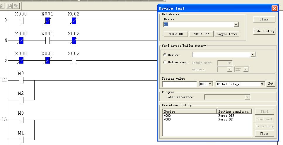 三菱的PLC在GX中不能強制X的,可以用短線直連COM端和需要檢測的輸入點,看有沒信號來判斷輸入點有沒問題,沒問題那就是現(xiàn)場接線問題.